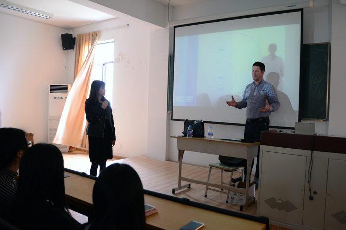 英国谢菲尔德哈勒姆大学建校于1843年,前身即为谢菲尔德设计学院。经过一百五十多年的发展,成为英国第六大的综合性公立大学,也是中英学历学位互认协议中第一批通过的英国大学。艺术设计专业是该校最强势的领域之一,也是英国最著名之一,校史悠久。Mr.Gordon向我们介绍了学院所在的城市谢菲尔德市的环境、交通、人文气息、风土人情,介绍了谢菲尔德哈勒姆大学学院的构成、专业的分类和课程的概览等,让学生们从介绍中走近学校,了解学校。
