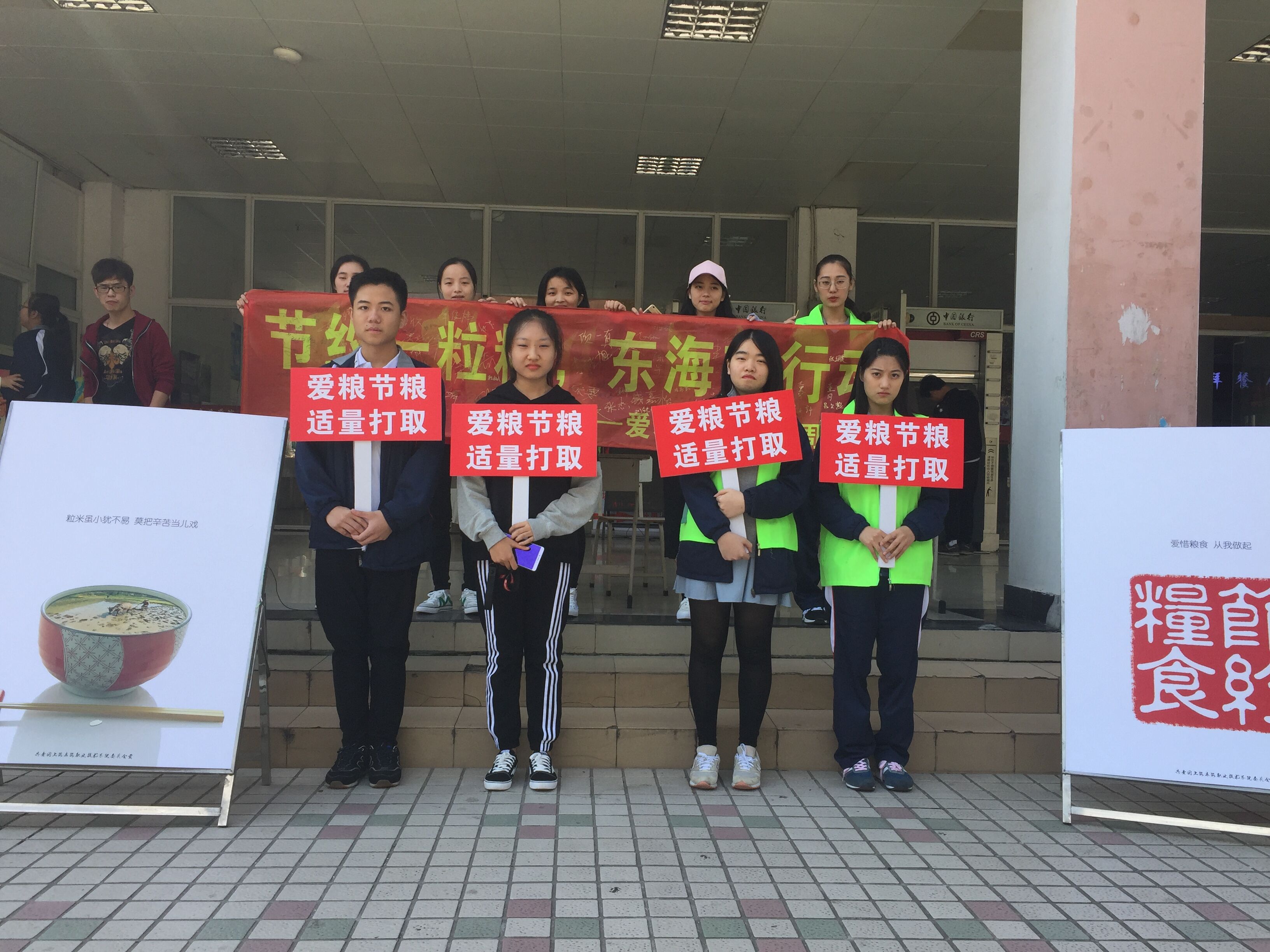 在2017年“世界粮食日”及第37个世界粮食日和第27个全国爱粮节粮宣传周到来之际,校团委启动“爱粮节粮宣传周”系列活动。在10月23-10月26日期间,校团委积极开展了主题展板宣传、食堂就餐文明宣传、爱粮节粮承诺签名等系列主题宣传教育活动。活动紧紧围绕“节约一粒粮,东海在行动”的主题,向学生发出“爱粮节粮,从我做起”的倡议,并结合近年来我校常态化开展的“光盘行动”等活动数据,不断向学生们强调新时期“艰苦奋斗、勤俭节约、珍惜劳动成果”的重要性和必要性。