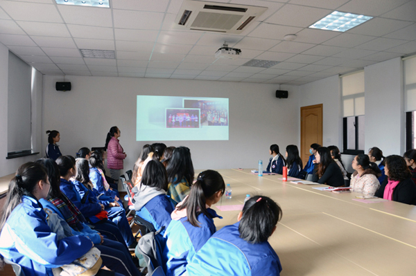 会议播放了2018年东海学院招生宣传视频,全方位向群益职校师生介绍东海学院基本情况。为增进群益师生对艺术学院的了解,艺术学院行政主任万黎黎从师资力量、专业实训、就业方向、技能培养、国际合作与交流、以及专升本事宜等七个方面对艺术学院专业教学及管理工作做了简要介绍;艺术学院服装专业主任徐雅琴从专业基础、课程设置、作业要求以及课外拓展等方面对服装与服饰设计专业的近期教学工作做了汇报;艺术学院学工办主任王莉娜分享了中高职贯通服装171班入学后的学习、生活、思想动态等情况;艺术学团委书记李天使为群益的师生介绍了学生会组织以及团委开展的一系列活动,让学生们充分了解大学丰富的校园文化生活。最后,艺术学院中高职贯通班服装171王辰捷、方音旋两位学生为群益师生分享了在东海学习生活的感受,并热心地解答了学妹们提出的问题。