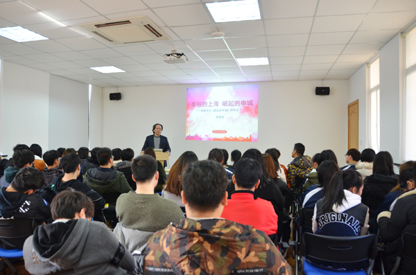 12月22日中午,艺术学院院长顾惠忠为2017级学生带来“美丽中国,美丽上海”讲座。