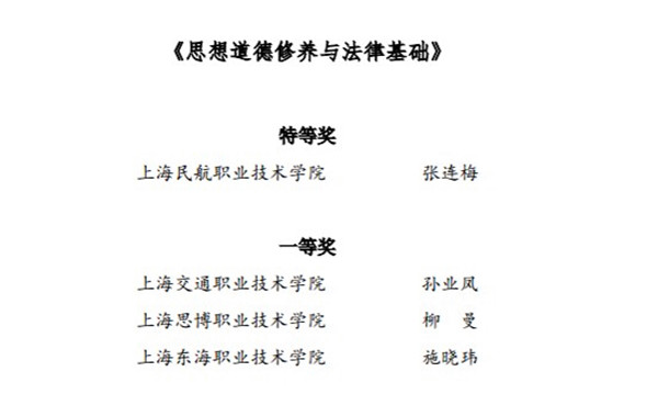 比赛分为《思想道德修养与法律基础》《毛泽东思想和中国特色社会主义理论体系概论》《形势与政策》三个组别。经过认真评审,共有来自13所高职院校的26位教师获奖。我校社科部教师施晓玮获得《思想道德修养与法律基础》组一等奖。